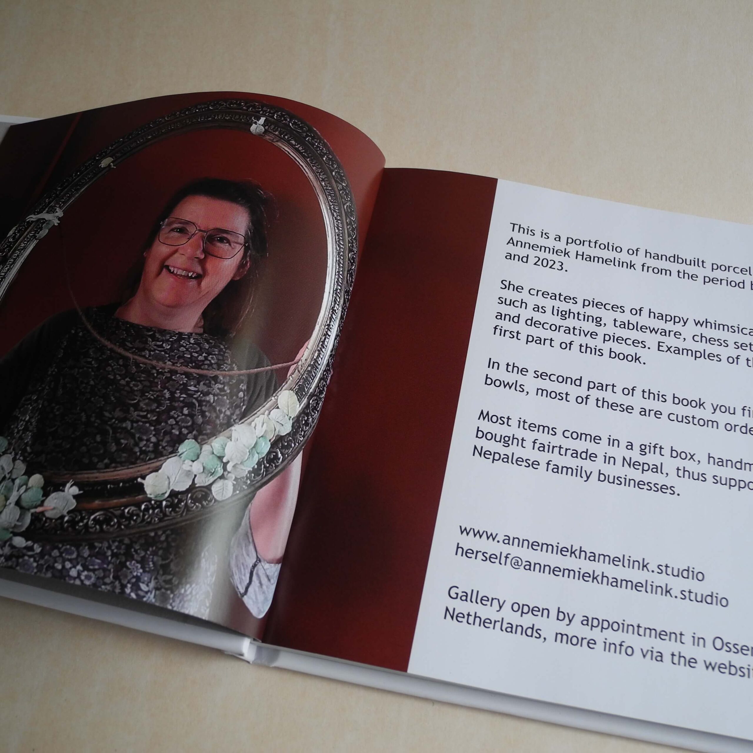 Hardcover book with a portfolio of Annemiek’s work. It contains 106 pages with dozens of pictures of her work created between 2010 en 2023. There is very little text, all wrinting is in English.