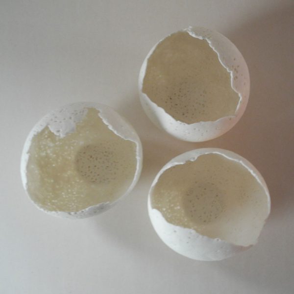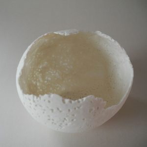 {PORCELAIN} Each piece is hand crafted by Annemiek from porcelain clay, known for its exceptional strength and translucency. This strength allows for delicate, thin designs. Porcelain requires a high firing temperatures. I fire my pieces at least twice: one at a low temperature before applying glazes, and a second at high temperature for translucency and glazing. Third firings are for decals/transfers or gold lustre. Natural porcelain is white, but pigments or stains can be added for colour, which permeates the entire piece. Glaze is applied only to the surface.
